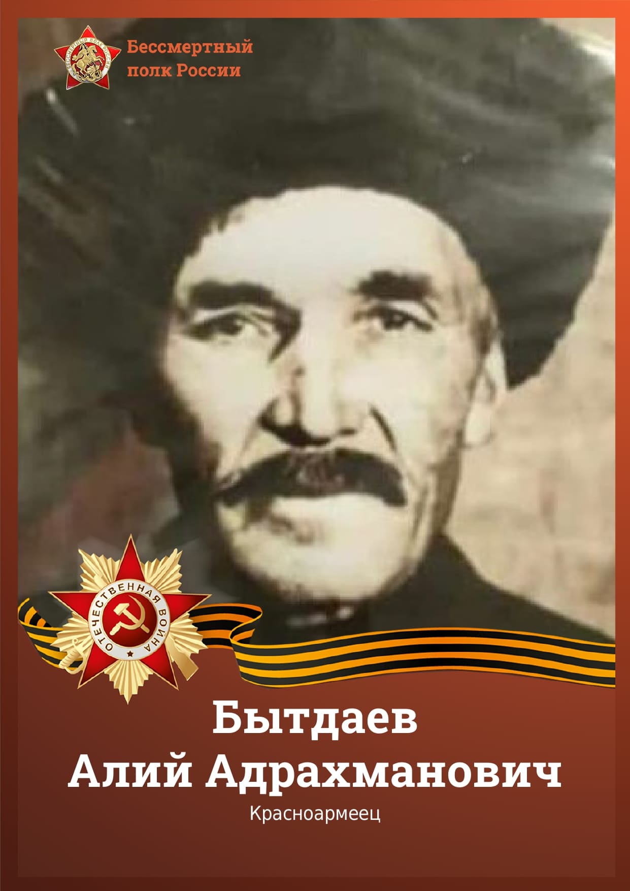 Бытдаев Алий Адрахманович 1907-1986 года. дед судьи в отставке Дотдаева Назби Юсуфовича, падедушка помощника судьи Каракотовой Марьям Назировны Батдыев А.А. до ухода на фронт был женат, и имел малолетних детей. Вернувшись с войны, долго искал свою семью, так как они были выселены в Средюю Азию. На Роднину вместе с семьей он вернулся в 1957 года и строить мирную жизнь в ауле Кобу-Баши, работал в колхозе имени Ильича зоотехником. Пулеметчик 112 стрелковой дивизии ранен в боях за Таганрог.