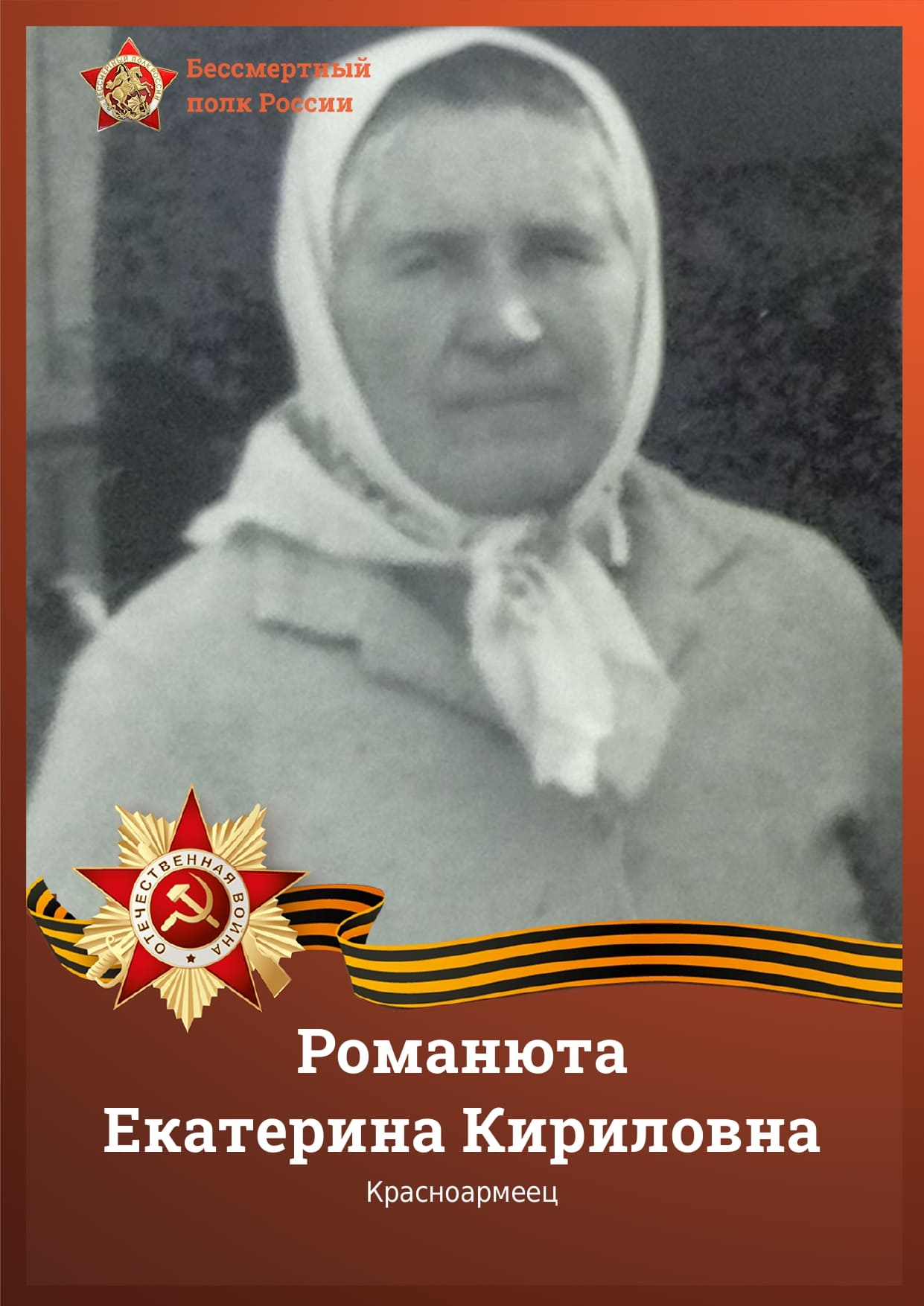 Романюта Екатерина Кириловна 1921-1989 года, место рождения с. Маруха, Зеленчукский р-н, Ставропольский край, дед секретаря судебного заседания Авдиенко Валентины Александровны. Награды Орден Отечественной войны II степени. 21 Октября 1989 года, похоронена в ст. Зеленчукской Карачаево-Черкесской Республики